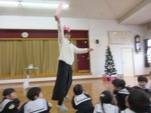 「みんなも冬休みの間、健康と安全に気をつけて過ごしましょう」と園長先生からお話がありました。