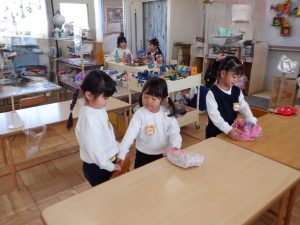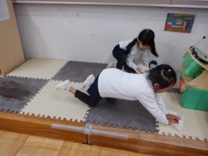 3学期も楽しく遊べるように、ダンスや楽器遊びなどで遊んだステージをピカピカにしたり、