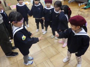 「あの子が欲しい」と名前を呼ばれることが嬉しい。ジャンケンに負けても、相手から歓迎されてなんだか嬉しい。掛け声をしながら行ったり来たりすることが楽しい。などの要素があり、ジャンケンに負けることに抵抗があった子も一緒に楽しく遊んでいます。