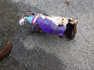 ぶどうジュースの缶が出てきました。おそらく昭和の商品だと思われますが、200mlの細いスチール缶で、飲み口が小さいプルタブで、缶の中からプルタブが出てくるという良質な状態で発掘されました。みんな「なんじゃこりゃ!」と大喜びで、近くを掘っていると「またあった!」「これもじゃない??」と3本出てきました。