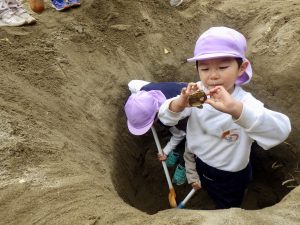 実際なぜあったのかは謎のままですが、ひとつ見つかってからは宝探しの雰囲気もあり、ワクワクしながらみんな穴掘りを楽しめていました。
