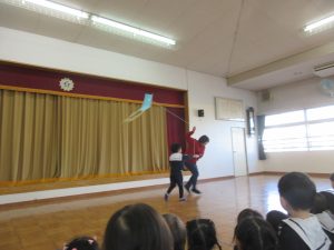 手作りの凧揚げを楽しむ様子を見せてくれた先生たちもいました。