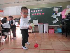 けん玉が苦手だった先生。同じクラスの年長児に弟子入りし、冬休み中にけん玉をたくさん練習したそうです。
