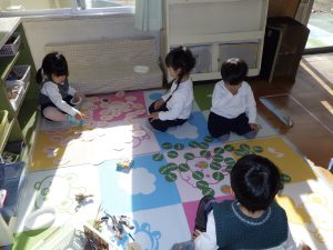 他にも絵あわせゲームなど、簡単なルールのある遊びを友達と一緒に楽しむ姿もみられました。これからも「一緒に遊ぶともっと楽しい!」と思えるように一緒に遊びを楽しんでいきたいです。