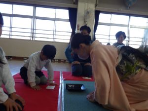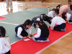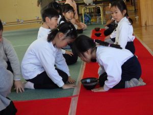 『お茶の会』と聞いて、どんなことをするの?とドキドキする子、「なんかさ、抹茶って聞いた!」「ちょっと苦いらしい!」と話している子、様々な姿が見られました。