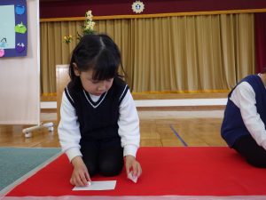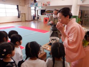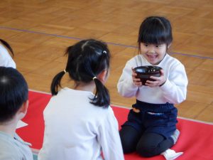 教えていただいたお辞儀をしてから、みんなが楽しみにしていた、お菓子をいただきます。
