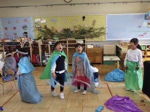 話を聞いているだけで子どもたちが演じている?踊っている?ところを見ているだけで、「あ〜こういうつもりなんだ。」と楽しい気分になれます。