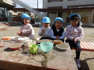 戸外で遊んでいた時、「先生は見ないで。見ちゃだめ。」、「秘密だから。」と、女児が数人で何か共通の思いがありそうな様子で勢いのある様子で、でも楽しそうに、私に話してきました。