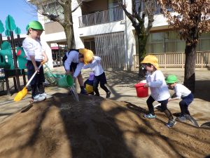 憧れて真似してもらい、嬉しそうないちょう組の子どもたちでした。