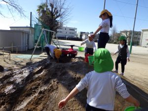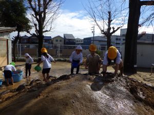 最初は穴を掘っていた子たち。途中から登場したのは水でした。