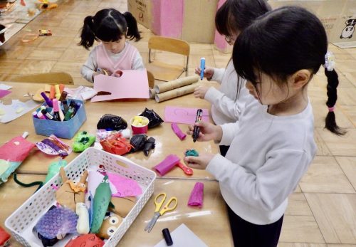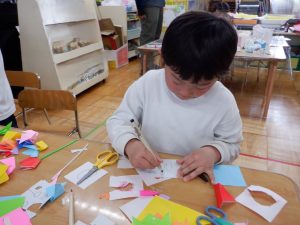 花束にしたい子、花をハートにしたら?と自分なりに考えて作り出す子、手紙も書こう!と書き始める子など、一緒に作っていく中でも、それぞれの個性が見られます!