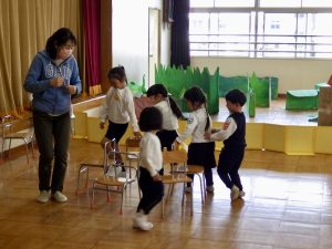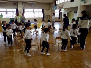 全員で椅子取りゲームをし、座れなかった子たちで