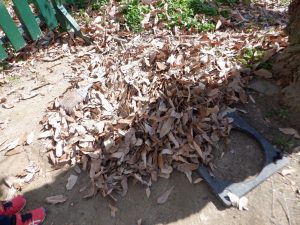 「葉っぱの掃除する!」と自分たちでも箒を持ってきます。
