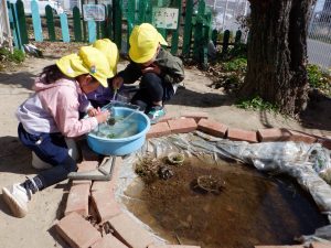 そして、よっしー先生にいただいたメダカも放流しました。