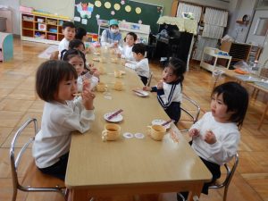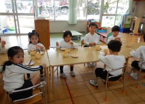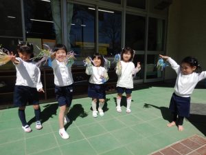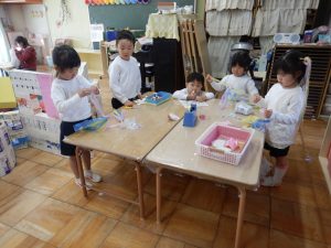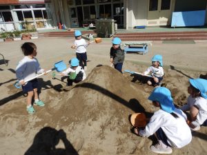 金曜日に「明日も幼稚園来たい!」と言う子がいるぐらい幼稚園で友達や先生といろいろな遊びを楽しみました。