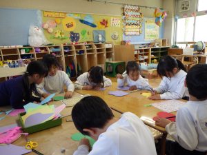 「みんなで渡そう!」「いちょう組で卒園式やろうよ!」ということになりました。みんなで「いいね!」となったら、あっという間にそれぞれが取り掛かれるところが、いちょう組の素敵なところ。いつもパワーが溢れているんですよね。