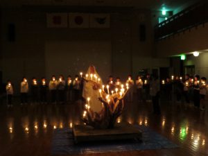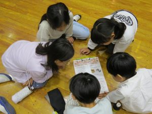 5年生の宿泊研修では、今年度は熊が出没する危険があったため、館内での研修となりました。館内謎解きラリーは、グループで頭を寄せ合って自然の家をくまなく散策して謎を解いたり、紙すき体験をしたりしました。また、幻想的なキャンドルセレモニーを行いました。みんなで協力して思い出に残る楽しい研修にすることができました。
