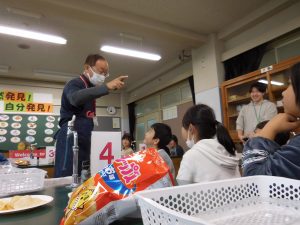 カルビーの方に来ていただいて、3年生と5年生は授業を受けました。3年生は、1日に食べるおやつの量について、5年生は、一日に必要な栄養について教えていただきました。自分の生活を自分で整える力をつけていきましょう。
