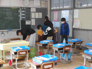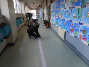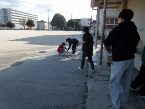 6年生が、学校のためにできることはないだろうかと自分たちで考えて、企画した活動の一つが「校内清掃」です。他学年の下校後の時間などに、教室や廊下、普段掃除しないところの清掃を行っています。