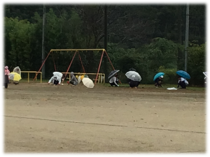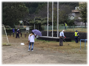 10月19日当日は、傘をさしながらの活動になりましたが、多くの方々に草刈りなど運動場の整備にご協力いただきました。また、「当日は都合があわないため、別日に取り組みます」というご連絡も事前にたくさんいただきました。本当にありがとうございました。 子どもたちも、安全な環境を自分たちでつくることの大切さと大変さを学びながら、活動場所を美しくしようと努力しました。皆さまのおかげで、さらに安全で美しく整った運動場で教育活動を行うことができました。運動会練習も運動会当日も思いっきり活動等に取り組むことができました。感謝の気持ちでいっぱいです。