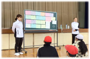 12月9日、ぎふBluvicの小西選手と吉川選手に「夢をもち、努力する尊さ」についてご講演いただきました。4~6年生は、それぞれの選手が苦しい状況があっても、夢に向かって努力した過程から学ぶことができました。プロのバドミントン選手のスマッシュの速さに驚きながらも、なんとか打ち返そうとする姿はたくましく、ほほえましかったです。努力の積み重ねがあってこそのプレーであることを知り、自分のこれからの歩みと重ねて考えることができた時間でした。