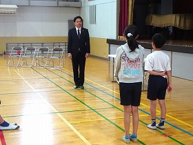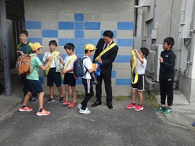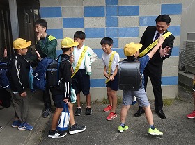 朝の登校時には、「あいさつし隊」と一緒に、登校してくる児童にハイタッチをしながらあいさつをされました。
