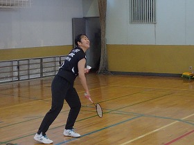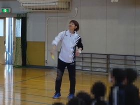 そして、希望した児童には、宮﨑選手のスマッシュを受ける体験をさせていただき(先生たちも体験させてもらいました)、スマッシュの速さを実感しました。