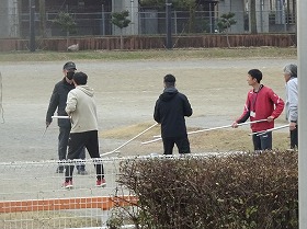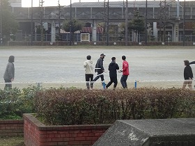 昼休みに、警察官演じる不審者が運動場に現れたという想定で、屋内に避難するという訓練です。