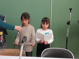 そして、2年生の代表児童が、お昼の放送で自分たちが育てたサツマイモが給食に使われていることを全校に伝えました。