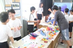 誰もが楽しめるように、たくさんのブーズが用意されています。教室いっぱいに遊びの店を開いて、クラス全員で楽しむことができました。