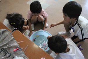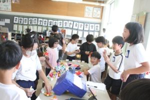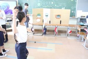 10月2日(木) 4年生の教室では、「4年祭り」というネーミングのレクリエーションが行われました。特別支援学校の仲間と一緒に「ヨーヨーつり」「しゃてき」「おみくじ」「ボール当て」「ペットボトルボーリング」などのゲームを楽しみました。