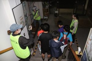 10月4日(土) PTAサポーターの皆様の主催による「きもだめし中」が開催されました。体育館を出発し、木田公民館の中を探検するコースです。5人前後のグループに分かれて出発しました。