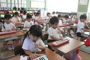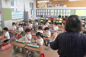 10月6日(月) 1年音楽では、「けんばんで おとあそび」の学習に取り組んでいます。