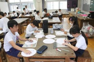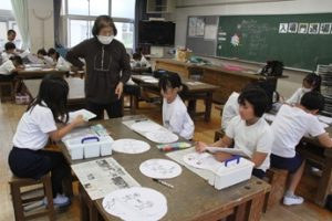 10月16日(木) 3年図工では、運動会で使う入退場門の飾りを作りました。