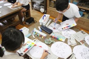応援やリレー、綱引きなどの運動会競技を絵に描いていきました。