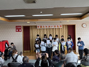 アトラクションでは、本校のインリーダー15名による合唱の発表がありました。子どもたちは、「Believe」と「校歌」の2曲を披露しました。ちょっぴり緊張しながらも地域の皆様に歌声を聴いていただくことができました。会場がいっぱいになるほどの大盛況の中で歌うことができました。