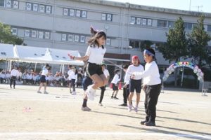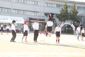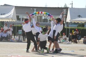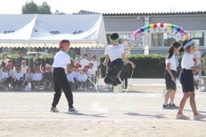 3・4年生による演技「みんないいね!~なわとび&ダンス~」です。曲に合わせて、なわとびの技に挑戦したり、楽しく踊ったりしました。