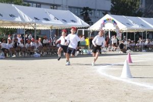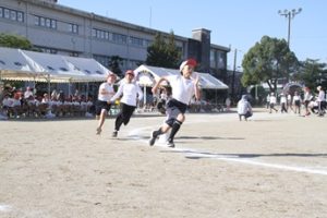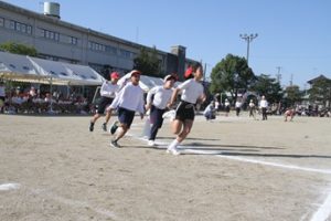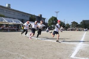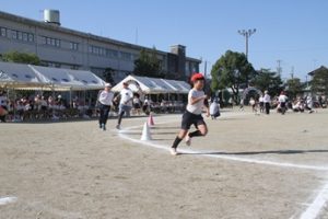 4年生による「スピードアップ!」です。スタートダッシュとコーナリングに気を付けて、全力で走りきることができました。