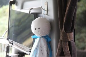 バスの中には、1年生のみなさんが作ってくれた「巨大てるてる坊主」も乗車しています。今日の天気は、曇り。暑くもなく、寒くもなくとてもすごしやすい1日です。てるてる坊主の効果抜群です。1年生のみなさん、ありがとうございました。