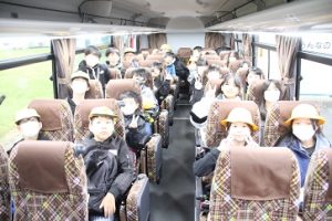 安全上、バスの中を自由に移動することはできませんが、クイズをしたり、レクリエーションを楽しんだりしました。