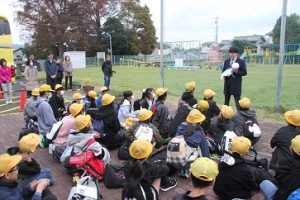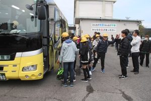 出発式後に、多くの保護者の皆様に見守られながら、バスは法隆寺へ向かいました。