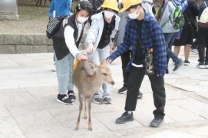 当初の予定では、全員が穴くぐりの体験を行う予定でしたが、体験を行うまでに長蛇の列をならばなければなりません。今回は、時間の関係上、穴くぐり体験を断念し、奈良公園の散策に時間をかけることとなりました。
