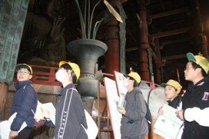 大仏殿の柱の穴の大きさは、大仏さんの鼻の穴と同じ大きさと言われています。