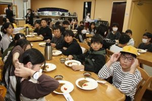メニューは、カレーです。みんなで美味しくいただきました。これから、清水寺の散策が始まります。そのあとは、お楽しみのひとつ「お土産」を買いにお店をまわります。