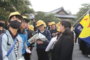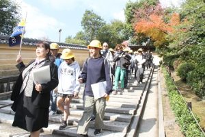 木の葉が色づくシーズンということもあり、修学旅行生や海外からの観光客のみなさんでいっぱいです。まるで、満員電車のような人であふれる中の見学となりました。