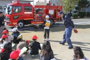 岐阜北消防署島分署の皆様には、大変ご多用の中、ご来校いただきました。また、子どもたちに貴重な体験をさせていただき、本当にありがとうございました。