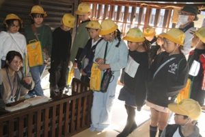 実際に見学する中で、屋根の両端に作られた「うだつ」には防火壁の役割をもっていることを知ることができました。また、うだつを上げることで当時の豪商がその富を競いあったということも知ることができました。散策をしながら、古いうだつから新しいうだつに至るまで、様々な立派なうだつを見学することができました。