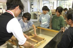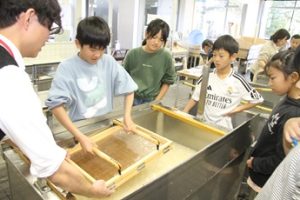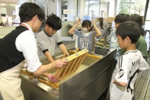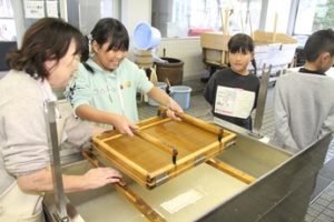 今後、自分で漉いた和紙に、将来の夢の一文字を書き、二分の一成人式で披露する予定です。