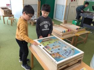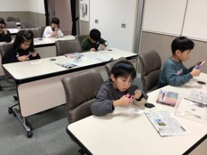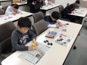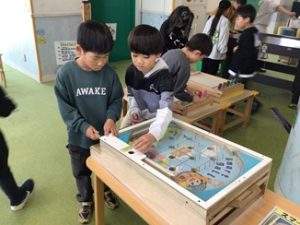 現地に到着すると、はじめにブンブンゴマ作りに挑戦します。ドリームシアター岐阜の方のお話をよく聞きながら、丁寧にコマづくりに取り組みました。コマが完成した児童からコマ回しを始めます。ブンブンと音を出しながらよく回るコマを完成させることができました。
