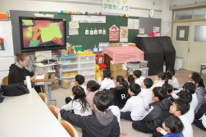 この日は、2年生への読み聞かせです。「つりばしわたれ」を読んでいただけました。本の挿絵を見ながら、後藤さんの読み聞かせに聞き入っていました。